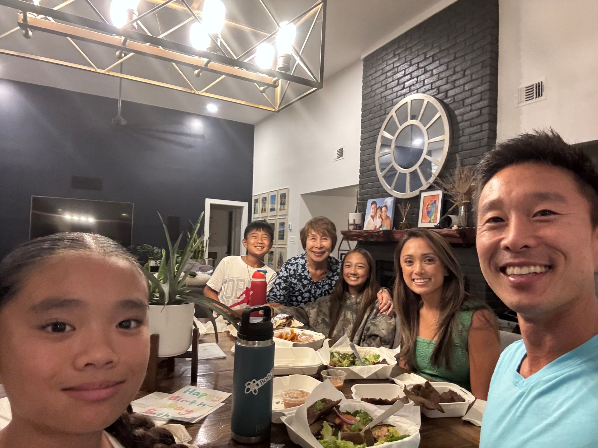 46 year old birthday dinner. Day included challenging business meetings, shuttling kids to activities, kids therapy session, and capped off with Nina’s nail biter volleyball game. We missed out on dinner reservations so we brought it home. The kids gave me heartfelt birthday cards and I got to share it with my mom. Circle of life, wild and crazy, but passes by quick if you don’t soak in the present.
